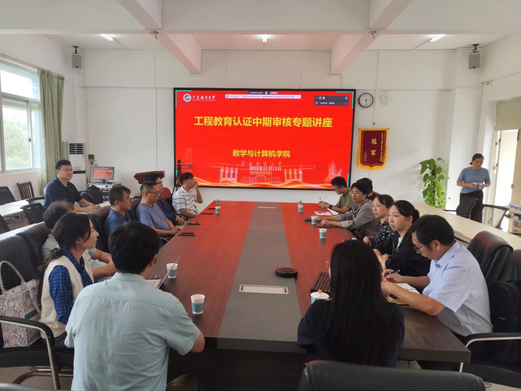 特邀桂林理工大学陈文鹏主任做“工程教育认证中期检查准备工作”专题讲座,院长彭小红、副院长余应淮及计科系全体教师参加。
