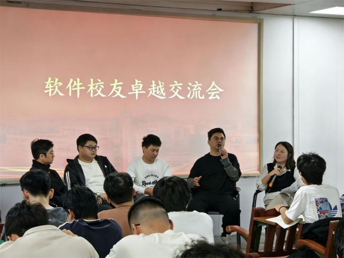 四位校友结合自身从软件工程到金融、航空、医疗、智能家居等跨领域发展的经历,分享了大学期间的成长感悟、职业转型的心路历程,以及持续学习、适应变革的实践经验。他们一致认为,软件工程教育赋予的不仅是技术能力,更是系统思维与解决问题的核心素养,这成为他们在不同行业立足与发展的重要支撑。